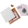 Mit unseren bedruckbaren Spielesets gelangt Ihre Werbebotschaft in die vier Wände Ihrer Zielgruppe! In unserem Shop haben Sie die Wahl zwischen unterschiedlichen Varianten: einem Karten-Würfel-Set und Geschicklichkeitsspielen. Beide Modelle kommen in einer praktischen Holzbox daher, deren Schiebedeckel wir individuell nach Ihren Wünschen bedrucken. Den vollfarbigen Digitaldruck führen wir dabei in der gewohnt herausragenden Qualität zu besonders günstigen Preisen aus.